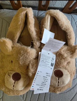 Adorables zapatillas de peluche con diseño de oso. - Material exterior de pelo sintético. - Interior forrado para mayor comodidad. - Detalle de cara de oso bordada. Talla 36-37