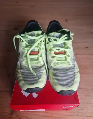 Zapatillas Puma Fast Track – Talla 43 Vendo zapatillas Puma Fast Track en muy buen estado, con uso medio y muy poco desgaste. Están bien cuidadas, sin roturas y prácticamente como nuevas. Ideales para correr en asfalto y pista, y también para carreras híbridas tipo Hyrox, gracias a su versatilidad y buena respuesta. Las vendo porque me quedan pequeñas. 📏 Talla: 43 👟 Marca: Puma 📦 Entrega en mano o envío por Wallapop Cualquier duda, ¡pregunta sin compromiso!