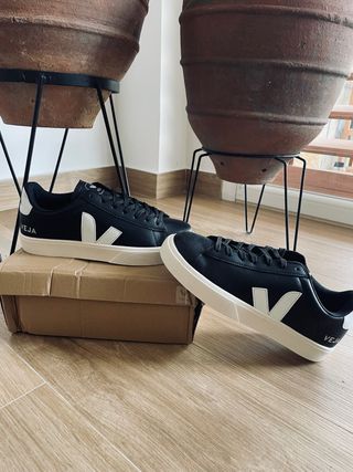 Zapatillas de la marca Veja en color negro con detalles blancos. - Diseño clásico y versátil. - Logo de la marca en el lateral.