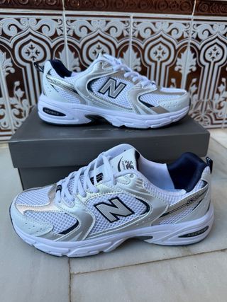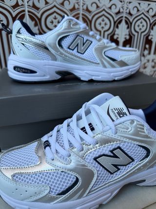 Zapatillas deportivas New Balance modelo 530. - Diseño en color plata y blanco. - Estilo deportivo y moderno.