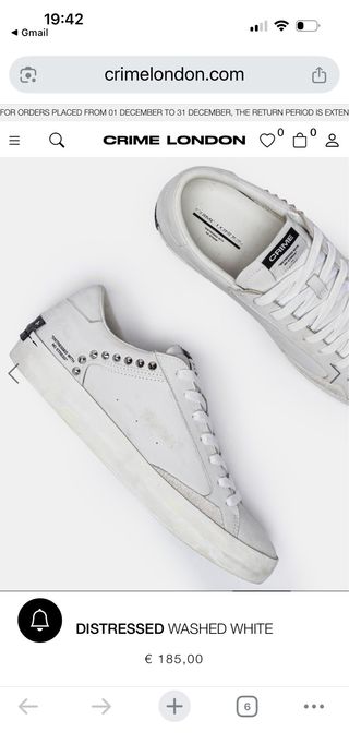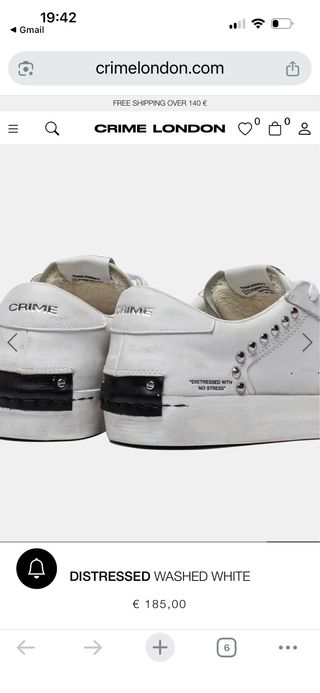 Zapatillas de la marca Crime London en color blanco y talla 41. Las vendo porque la tienda no accepta la devolucion ! - Diseño con detalles desgastados. - Acabado distressed with no stress. - Adornos metálicos en el lateral.