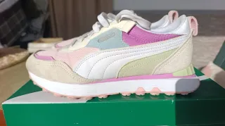 Zapatillas Puma Rider FV Vintage en talla 38. Un diseño retro con toques modernos. - Combinación de colores vibrantes. - Paneles de ante y malla. - Detalle de logo en el lateral.