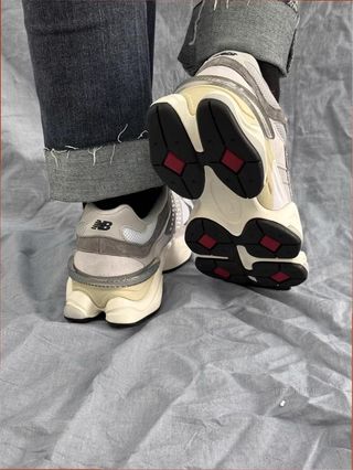 Zapatillas New Balance 9060 en color gris y blanco. - Diseño moderno y cómodo. - Detalles en gamuza y malla. - Suela robusta para mayor amortiguación.