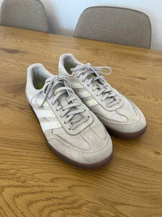 Zapatillas Adidas Bermuda sin estrenar, talla 41. Un diseño clásico con un toque moderno. - Exterior de ante. - Suela de goma. - Detalle de las tres rayas icónicas.