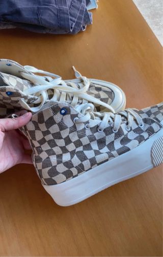 Zapatillas de lona con un diseño de cuadros - Estampado de cuadros en tonos beige y marrón. - Cierre con cordones. - Diseño de caña alta.