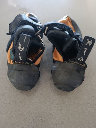 Vendo un par de zapatillas de escalada, ideales para principiantes. Están muy buen estado, tiene dos puestas. - Marca: Anisazis - Talla: 37 '5 cms - Color: Naranja con tiras negras - Material: Piel y goma