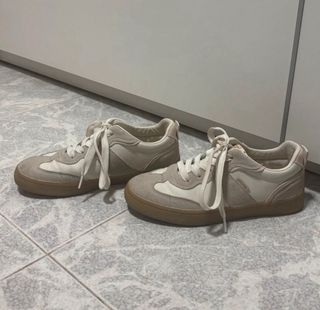 Zapatillas de la marca Mustang en tonos beige y blanco. Un calzado cómodo y versátil. Muy cómodas.