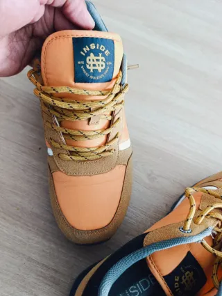 Zapatillas de la marca INSIDE con un diseño moderno y llamativo. Solo usaba dos veces - Combinación de colores marrón y naranja. - Cordones de estilo montañero. - Detalle de logo en la lengüeta.