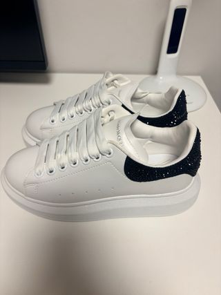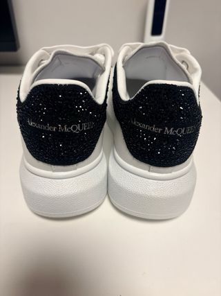 Deportivas de Alexander McQueen en blanco con detalles brillantes en el talón. - Diseño clásico. - Acabado en piel. - Detalle de pedrería negra en la parte trasera.