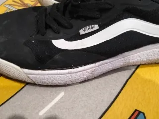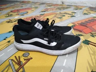 Zapatillas Vans Ultrarange en color negro con detalles blancos. Perfectas para el día a día. Lateral foto muestra tara despegado, subsanable. - Diseño deportivo. - Suela de goma. - Cierre de cordones.