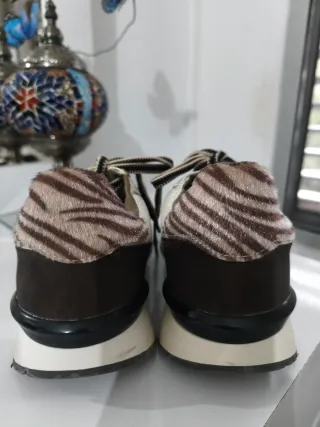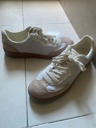 Zapatillas de Zara talla 40, combinando tonos beige y blanco. - Diseño moderno y versátil. - Materiales textiles y ante. - Suela de goma marrón. solo se usaron un dia, talla errónea, por eso las vendemos precio: 10€