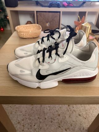 Zapatillas deportivas Nike Air Max en color blanco y rojo. Diseño moderno y cómodo. - Parte superior de malla transpirable. - Unidad Air Max visible en el talón. - Suela de goma para mayor tracción.