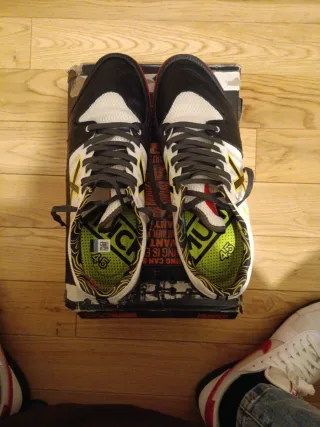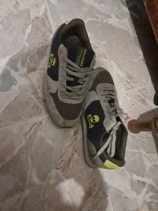 Zapatillas deportivas de la marca Scalpers con un diseño llamativo. - Detalle de calavera en color amarillo. - Combinación de colores negro y gris.