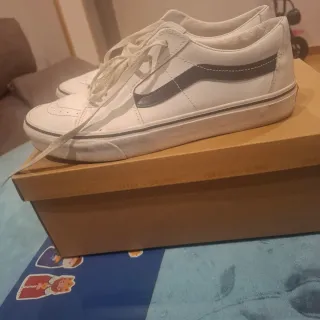 Zapatillas de la marca Vans en color blanco. - Diseño clásico con detalles perforados. - Raya lateral característica de la marca.