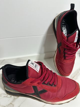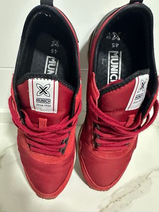 Zapatillas deportivas Munich con un diseño moderno y llamativo. - Combinación de colores rojo y negro. - Detalle de logo en la lengüeta.