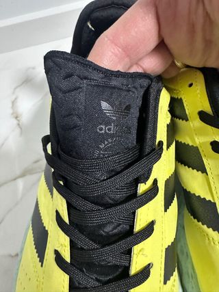 Zapatillas deportivas Adidas con un llamativo diseño. - Combinación de colores negro y amarillo. - Detalle del logo Adidas en la lengüeta.