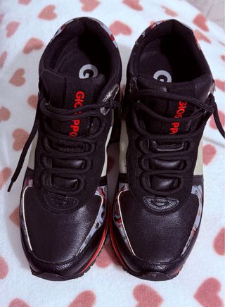 Zapatillas de mujer de la marca Gioseppo con un diseño moderno y llamativo. - Combinación de colores negro y multicolor. - Detalle de diseño en los laterales. - Suela con varias capas de color.