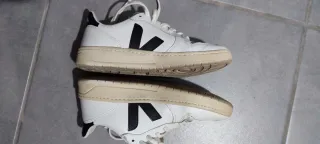 Zapatillas de la marca Veja en color blanco con detalles en negro. - Diseño moderno y versátil. - Materiales de calidad, piel