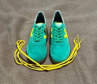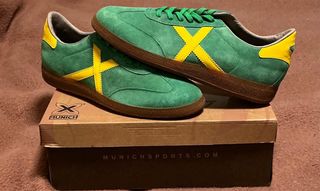 Zapatillas Munich modelo Barrufet. - Color verde con detalles amarillos. - Cordones amarillos. - Suela de goma.