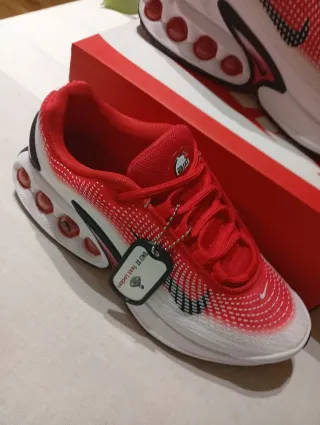 Zapatillas deportivas Nike en llamativos tonos rojos y blancos. Perfectas para un estilo casual o para entrenar. - Diseño moderno y deportivo. - Combinación de colores vibrante. - Marca reconocida por su calidad.