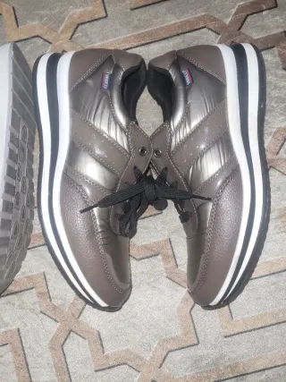 Zapatillas Mujer Talla 39 Marrón y Plata