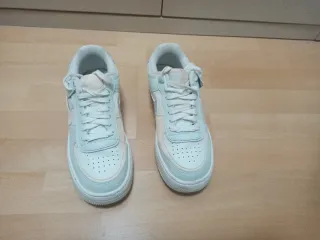 Zapatillas Nike Air Force 1 Shadow en talla 38.5. - Diseño moderno con capas superpuestas. - Combinación de colores pastel y blanco. - Detalle de logo en la lengüeta.