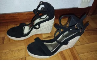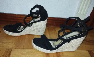 Zapatillas de esparto con cuña negras
