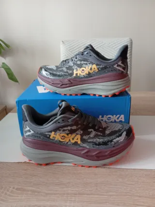 Zapatillas Hoka grises y naranjas