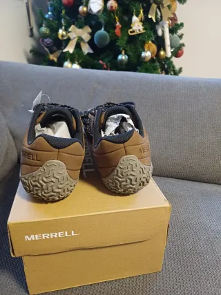 Zapatillas Merrell para hombre en color marrón. - Modelo J067863. - Diseño robusto y moderno. - Suela con agarre.