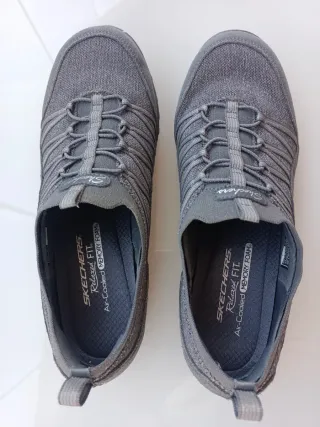 Zapatillas deportivas Skechers para mujer en color gris. Diseñadas para ofrecer comodidad y estilo. - Cierre elástico con cordones. - Parte superior de malla transpirable. - Suela flexible y ligera. Plantillas air- cooled memory Foam que se trata de una plantilla viscoelástica que se adapta a la forma del pie para mayor comodidad y amortiguación combinada con un sistema de ventilación que mantiene los pies frescos y secos. Ajuste relaxed fit