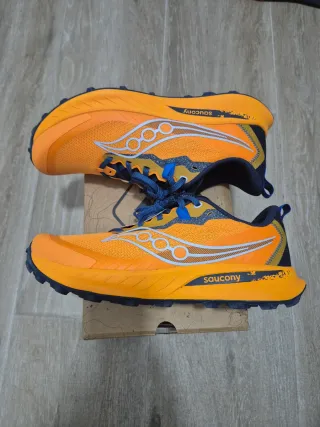 NUEVO SIN USAR TALLA 45 Zapatillas deportivas Saucony Peregrine 15 en llamativos tonos naranja y azul. Diseñadas para el trail running. - Parte superior de malla transpirable. - Suela con buen agarre para terrenos irregulares. - Cierre de cordones. - Detalle del logo Saucony en los laterales. ENVÍO RÁPIDO MÁS COSAS EN MI PERFIL VER VALORACIONES Castelli poc look s-works abus kask bontrager salomon sidi dmt giro rudy fox shimano scott fizik spiuk oakley garmin suunto polar wahoo le col hjc pro sram pas normal lazer 100% bh orbea bmc canyon cannodale trek ktm cube giant syncros studios specialized mobel dt swiss gravel carbono carr