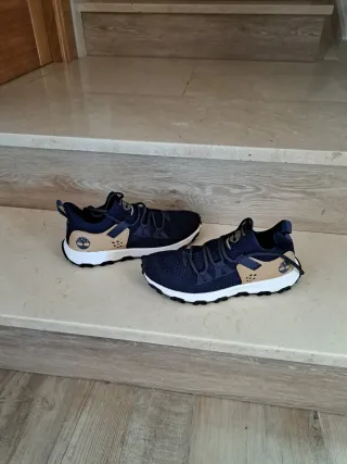 Zapatillas deportivas Timberland con un diseño moderno y cómodo. - Combinación de colores azul y beige. - Detalle del logo de Timberland en el lateral.