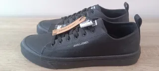 Zapatillas de la marca Jack & Jones en color negro. Un calzado versátil y moderno. - Diseño de corte bajo. - Cierre con cordones. - Detalle de logo en el lateral. - Calzan grandes. - Talla 44. - Nuevos. - Sin caja.