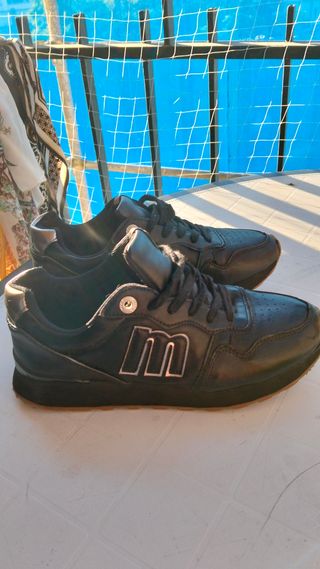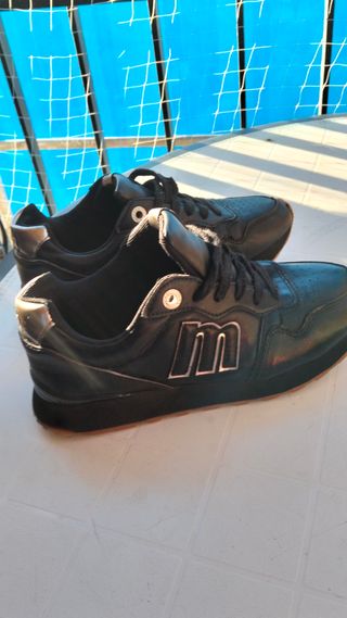 Zapatillas Mustang en color negro, talla 36. Diseño deportivo y moderno. SIN USAR, SOLO PROBADAS UN PAR DE DIAS LAS VENDO PORQUE ME LAS REGALARON PERO ME QUEDAN MUY JUSTAS - Logo de la marca en el lateral. - Cierre con cordones. - Detalle metálico en el talón.