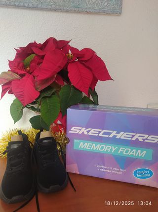 Zapatillas deportivas Skechers en color negro, talla 44. Cuentan con la tecnología Memory Foam para mayor comodidad. Nuevas, sin estrenar , en su caja. Ideal para regalo de Navidad o Reyes - Diseño ligero. - Materiales de calidad premium.