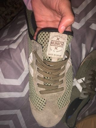 Zapatillas Munich de estilo casual, perfectas para el día a día. - Diseño con paneles de malla y ante. - Cordones marrones a juego. - Detalle de la marca en la lengüeta.