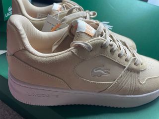 Zapatillas de la marca Lacoste en tonos beige y blanco. - Diseño deportivo y casual. - Detalle del logo de Lacoste. - Suela de goma.