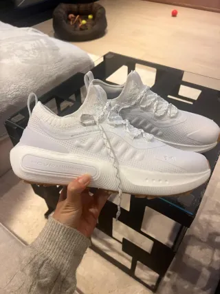 Zapatillas de golf Under Armour en color blanco y detalles en marrón. Están nuevas sin estrenar. - Diseño moderno y cómodo. - Suela con buen agarre.