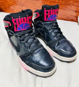 Zapatillas Nike Force Mach Mid en piel color negro y detalles en otros colores. Talla 42,5. puestas en varias ocasiones, pero conservadas en buen estado general. - Diseño icónico de baloncesto. - Cierre con cordones. - Detalle de logo en la lengüeta. #nikeforce #airforce #nike #vintage #retro #basket #moda #estilo #tendencia #oportunidad