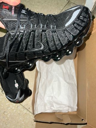 Zapatillas deportivas Nike Shox TL en color negro. Diseño moderno y cómodo. - Parte superior de malla transpirable. - Sistema de amortiguación Shox. - Swoosh icónico en el lateral. estan nuevas me las puse una vez y me quedaban chicas y ya no se podia descambiar