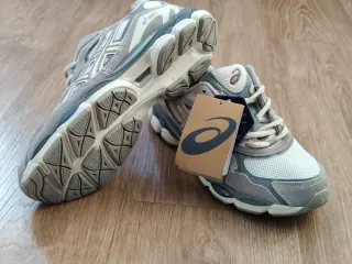 Zapatillas deportivas Asics NYC Gel en tonos grises y blancos. Perfectas para el día a día. - Diseño deportivo. - Detalles en malla. - Suela con tecnología GEL.