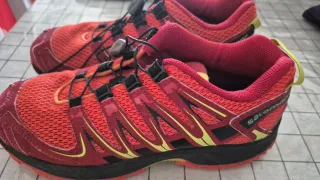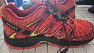 Zapatillas de montaña Salomon XA Pro. - Color principal rojo con detalles en amarillo. - Cierre rápido con cordones. - Suela de goma para un buen agarre.