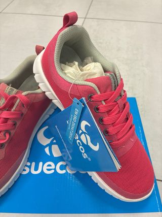 Zapatillas deportivas de la marca Suecos en color rosa. - Cierre de cordones. - Suela blanca.