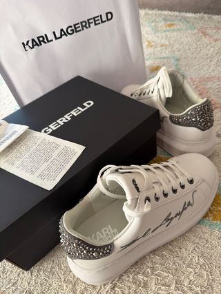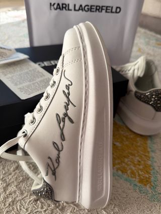 Zapatillas deportivas de la marca Karl Lagerfeld. - Diseño en color blanco con detalles plateados. - Adornos de pedrería en el talón. - Firma Karl Lagerfeld estampada en el lateral.