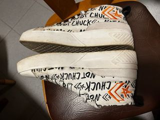 Son talla 45 y fueron compradas en la pagina web de puma hace 3 años. No me resultaban muy cómodas y les di muy poco uso. A pesar de ello, se ven signos de vejez en las puntas amarillentas de los plásticos. Por lo demás, están bien cuidadas. No conservo la caja original.