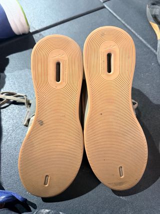 Zapatillas Reebok de suela marrón y detalles blancos. - Talla 38. - Marca Reebok.