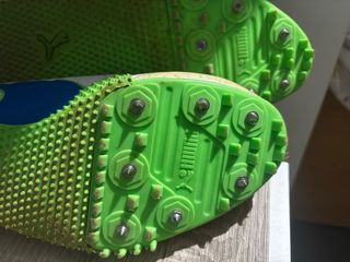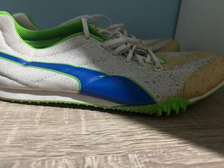 Zapatillas de atletismo PUMA modelo TFX STAR V.3 con clavos, talla 43. Diseñadas para competición en pista, especialmente pruebas de velocidad (sprint). Suela rígida con clavos metálicos, gran agarre. En buen estado, tal como se aprecia en las fotos.
