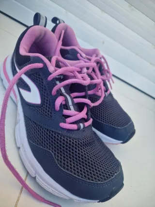 Zapatillas deportivas de la marca Kalenji. - Diseño en color negro con detalles en rosa. - Cordones a juego.