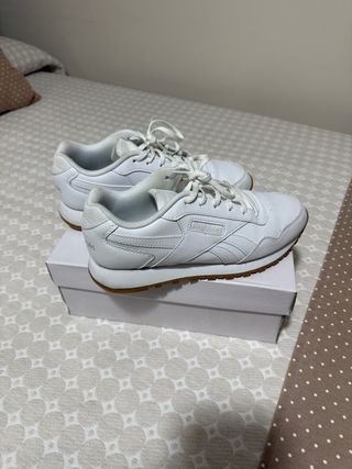 Zapatillas deportivas Reebok de estilo clásico. - Diseño en color blanco. - Suela de goma marrón.
