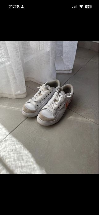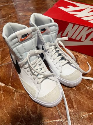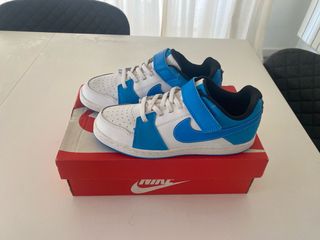 Zapatillas deportivas de la marca Nike en talla 35. Combinan blanco y azul. se venden por cierre tienda deportes. - Cierre de velcro. - Diseño deportivo.